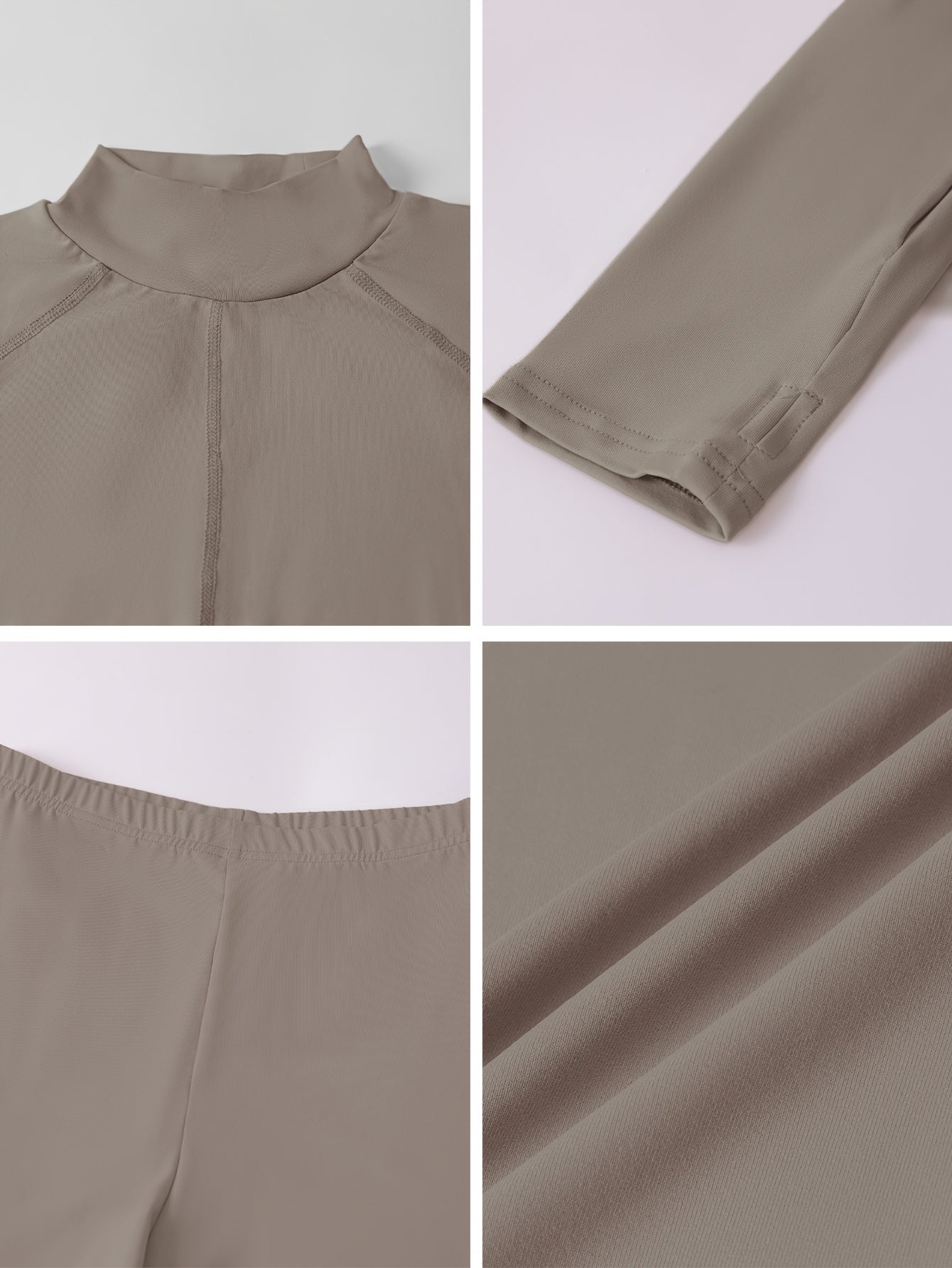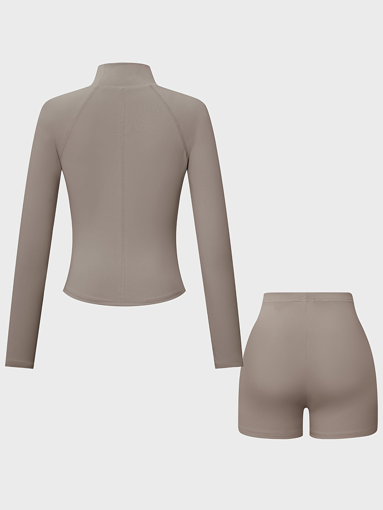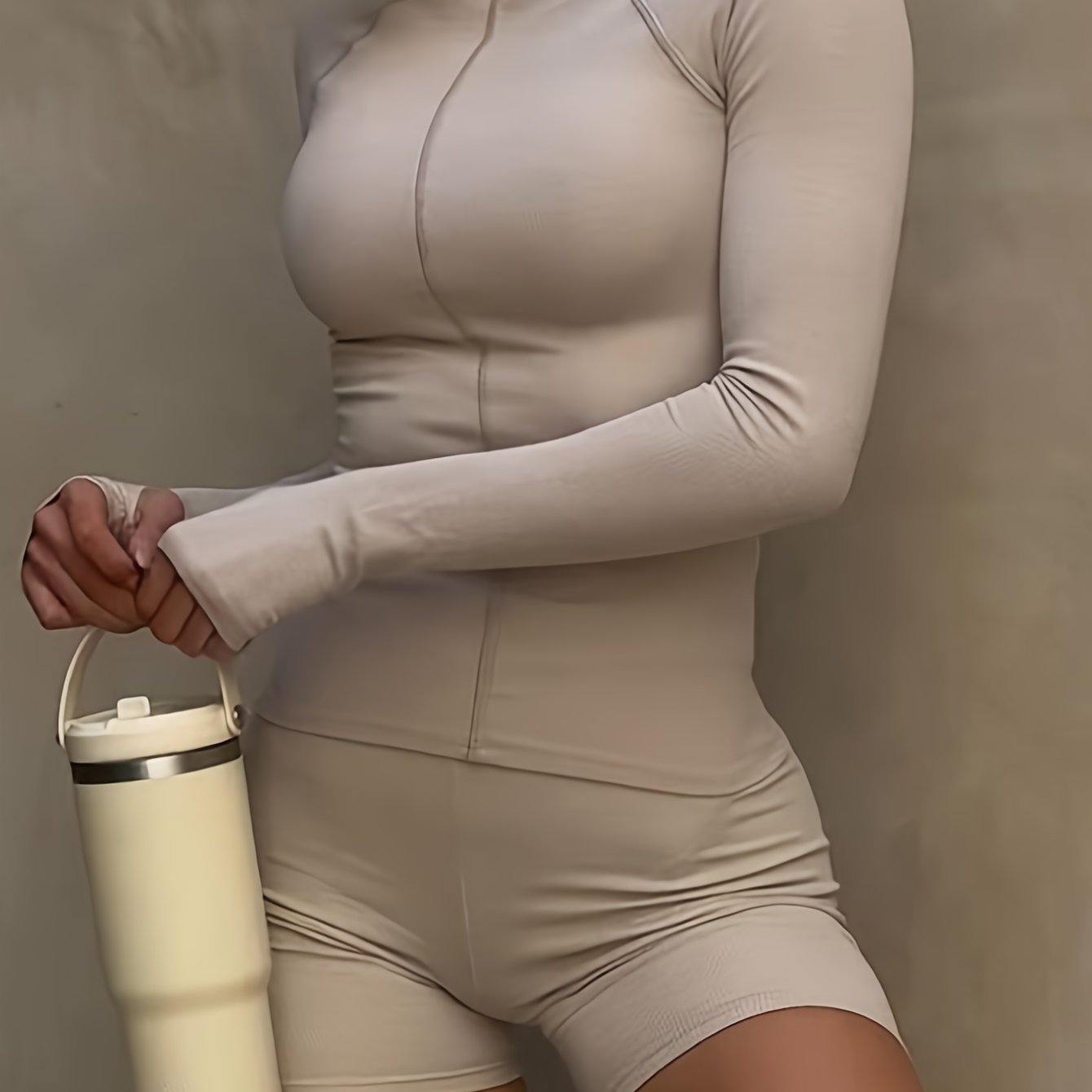 Fashionable Women's 2pcs Yoga Sports Suit, Elegant Small Turtleneck, High Waist Sports Shorts, High Elasticity, Suitable for Running, Yoga, Cycling, Fitness, Studio, Casual Outing, Evening Date, Daily Wear