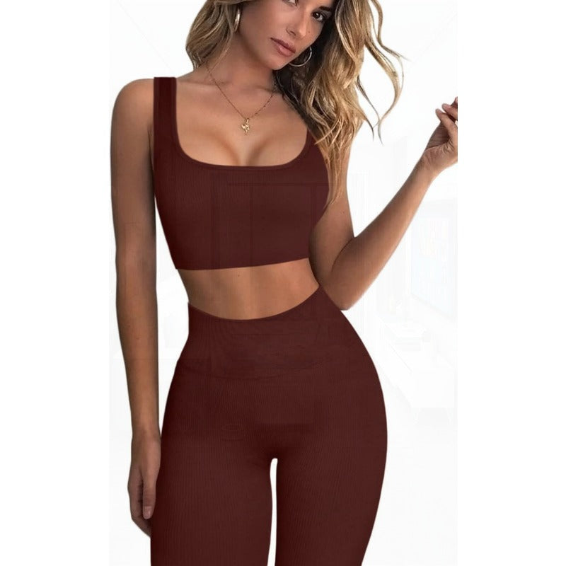 Ribbed Workout Outfits for Women 2 Piece Seamless Sport Bra High Waist Yoga Leggings Sets