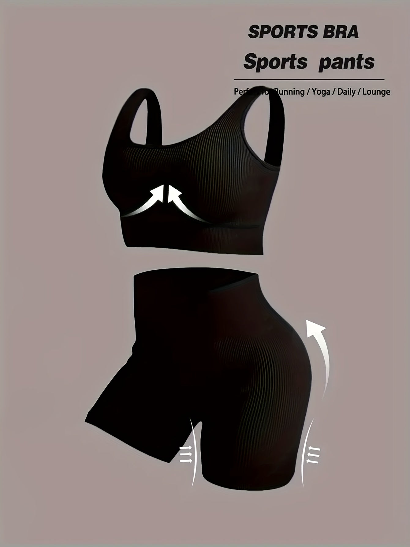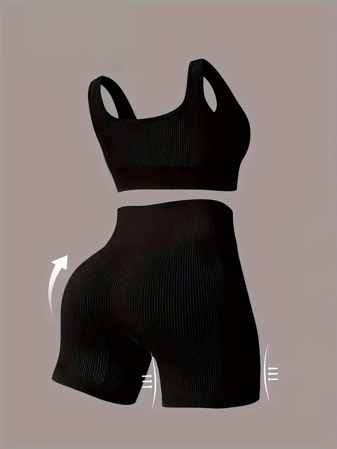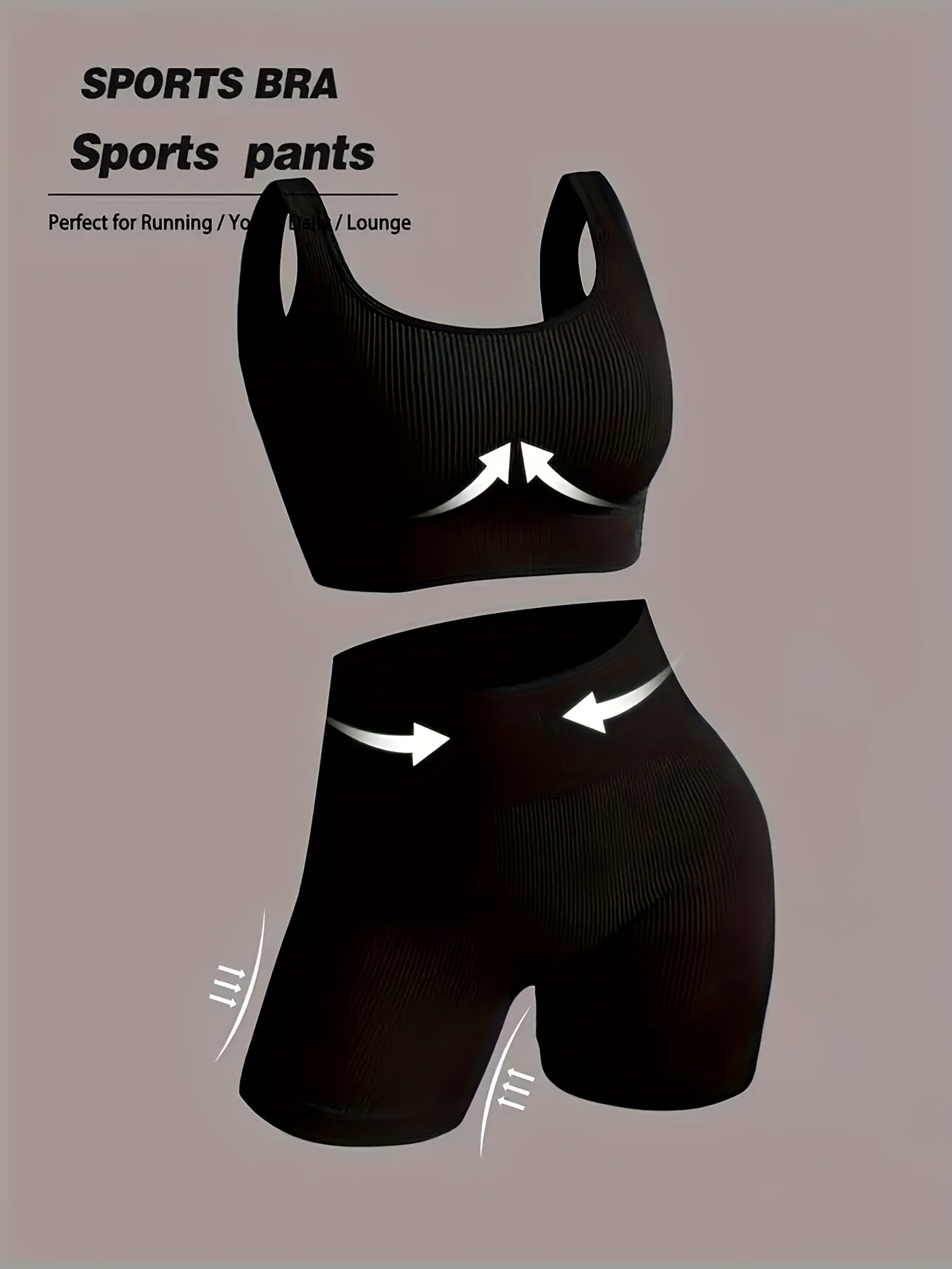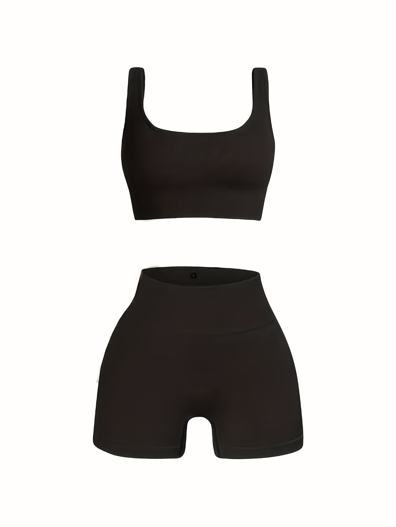 Solid Color Two-Piece Outdoor Women's Sports Shorts and Sleeveless Top High Elastic Fitness Shaping