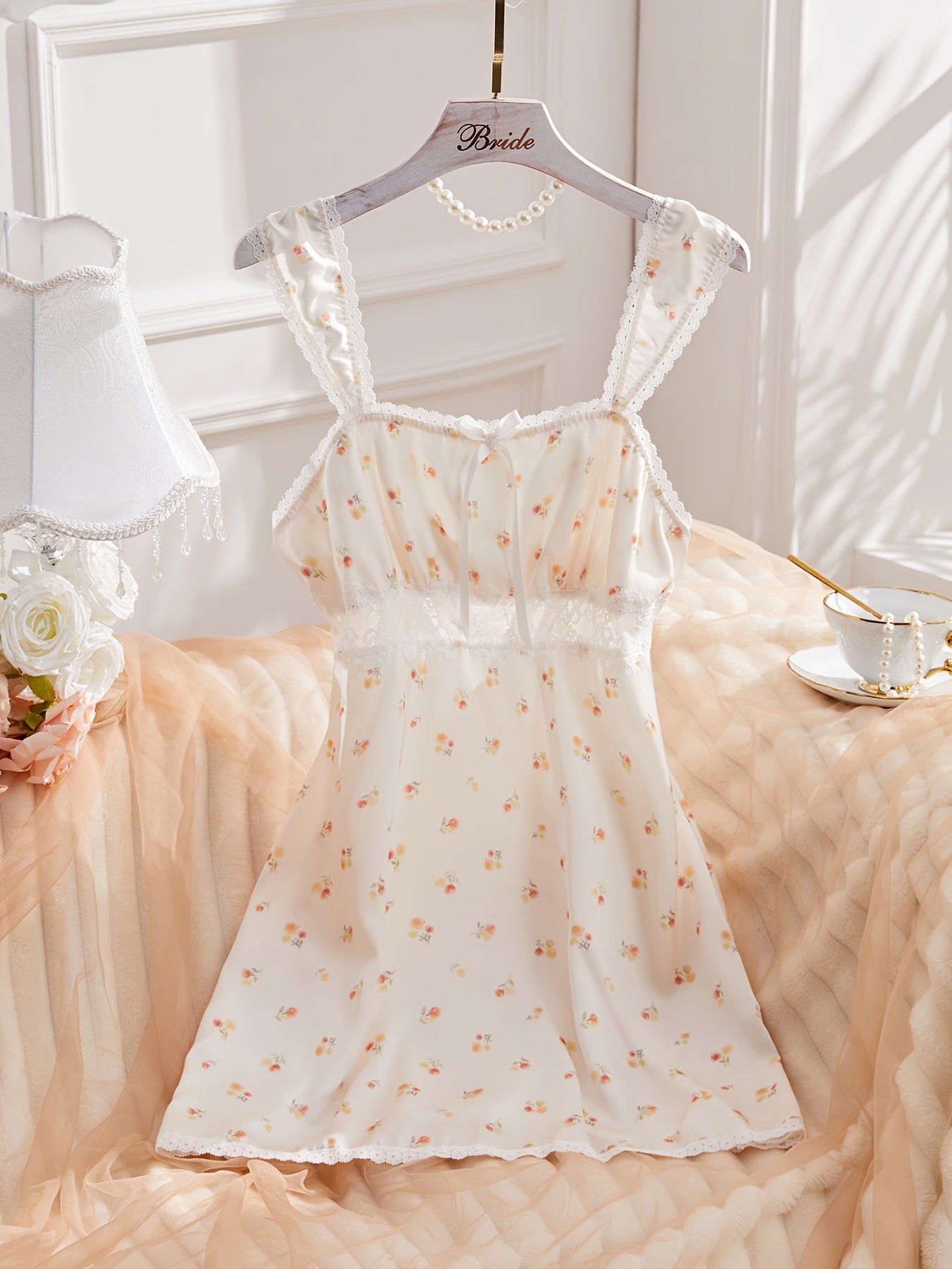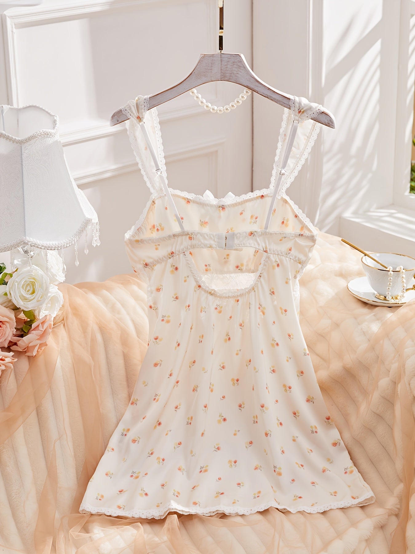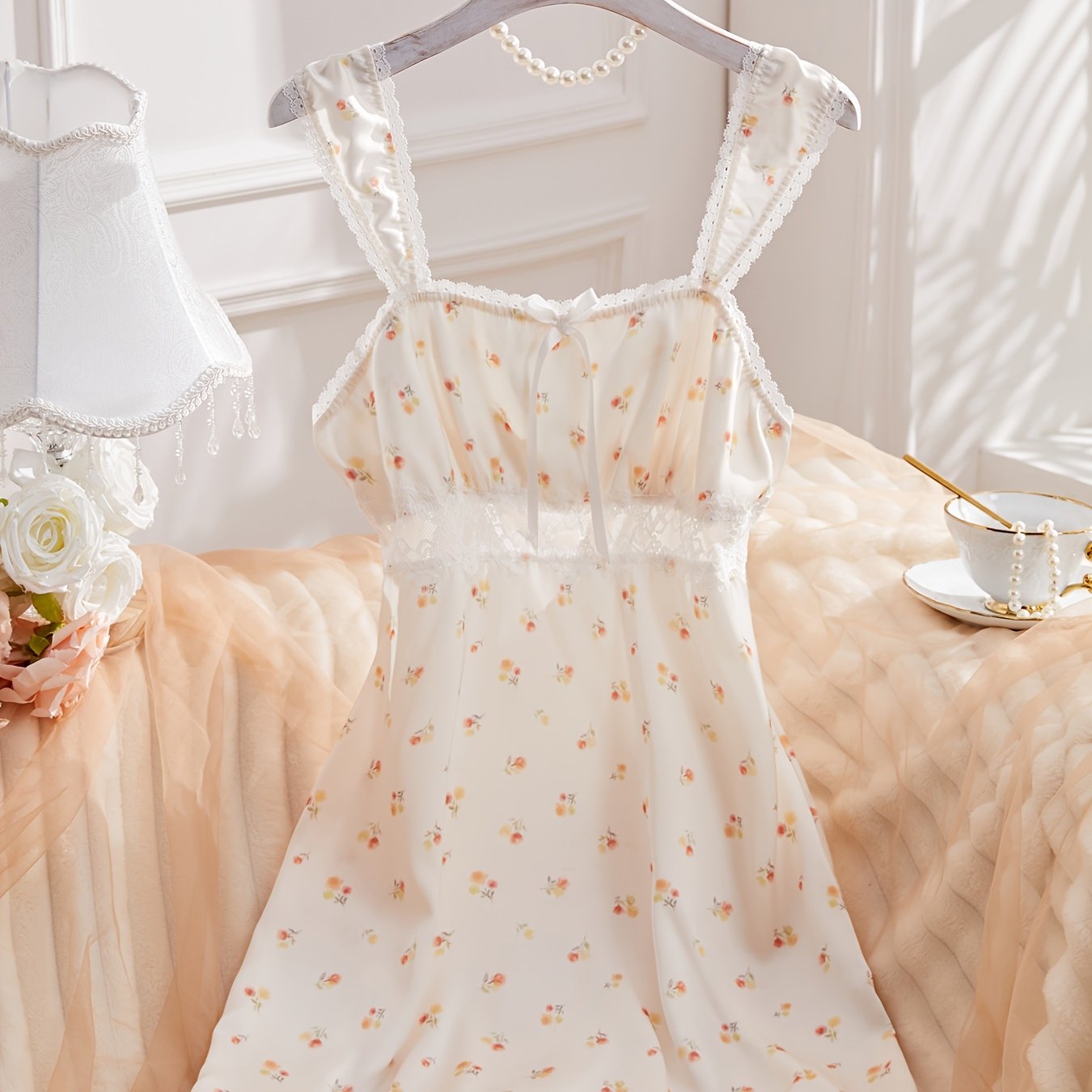 Sweetie Floral Print Women'S Cute Nightgown, Hook Eye Back, Cooling Fabric, Easy to Perfect Fit Different Size, Women'S Pajamas Slip Nightie for Spring& Hot Summer