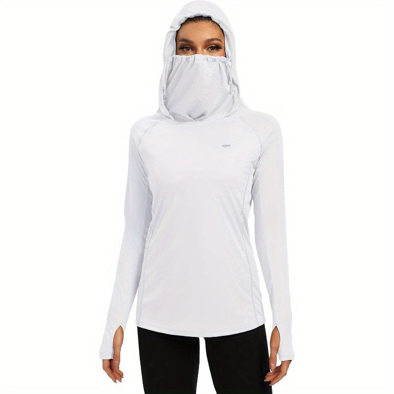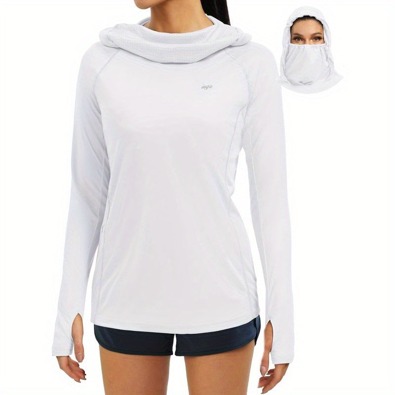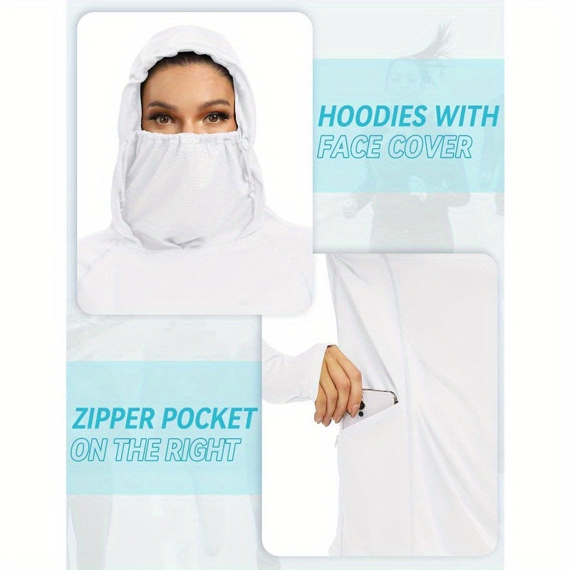 Women'S 50+ Shirt with Built-in Face Mask - Lightweight Breathable Hoodie, Quick-Dry Long Sleeve Top for Outdoor Activities, Hiking, Beach - Sun Shield Clothing with Neck Coverage, Clothing, Hiking Apparel, Minimalistic Design, Stretchy Fabric