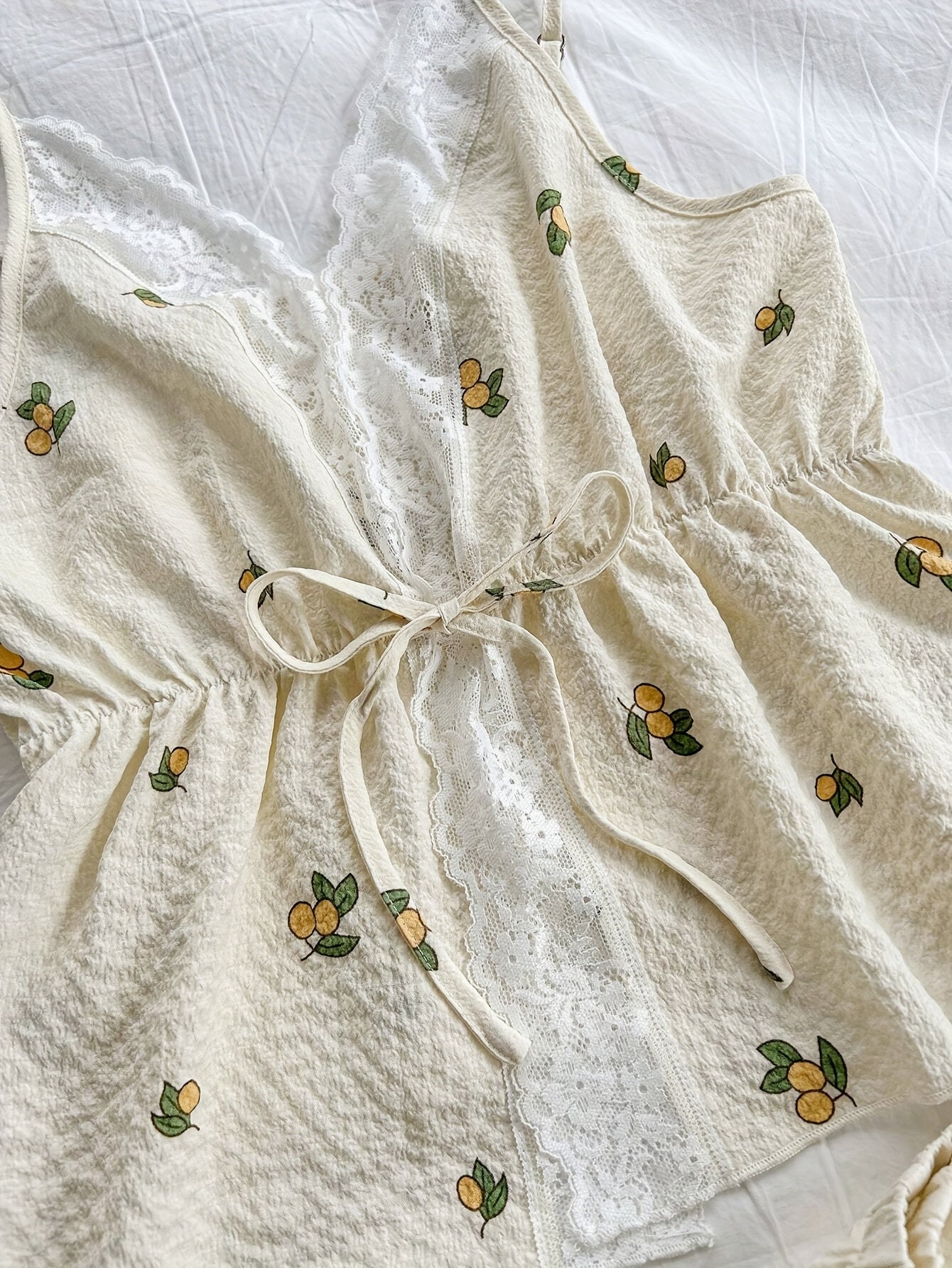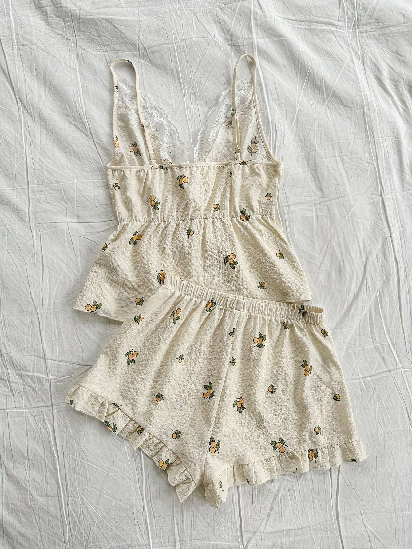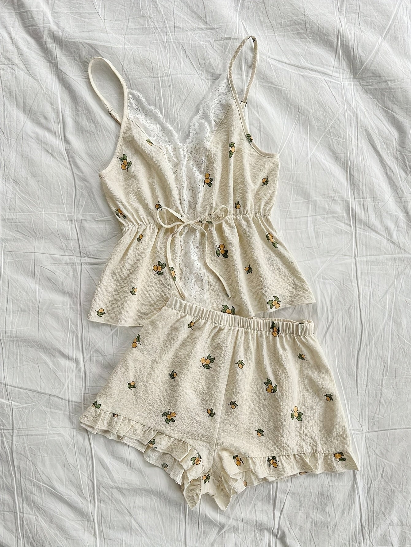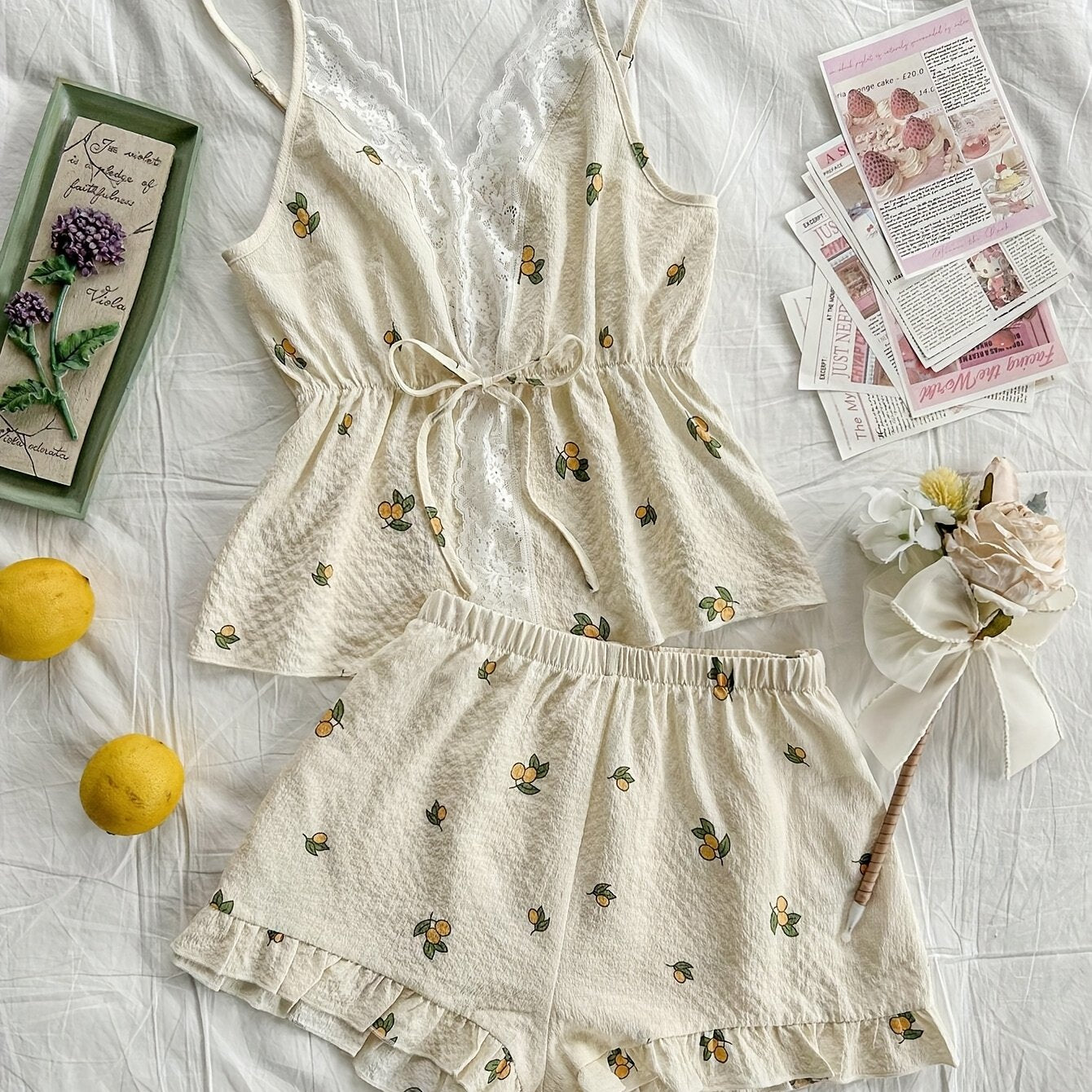 Women'S Fashion Lace Camisole and Shorts Pajama Set, Floral Pattern Spaghetti Strap Tank Top and Shorts Pajama Set, Summer