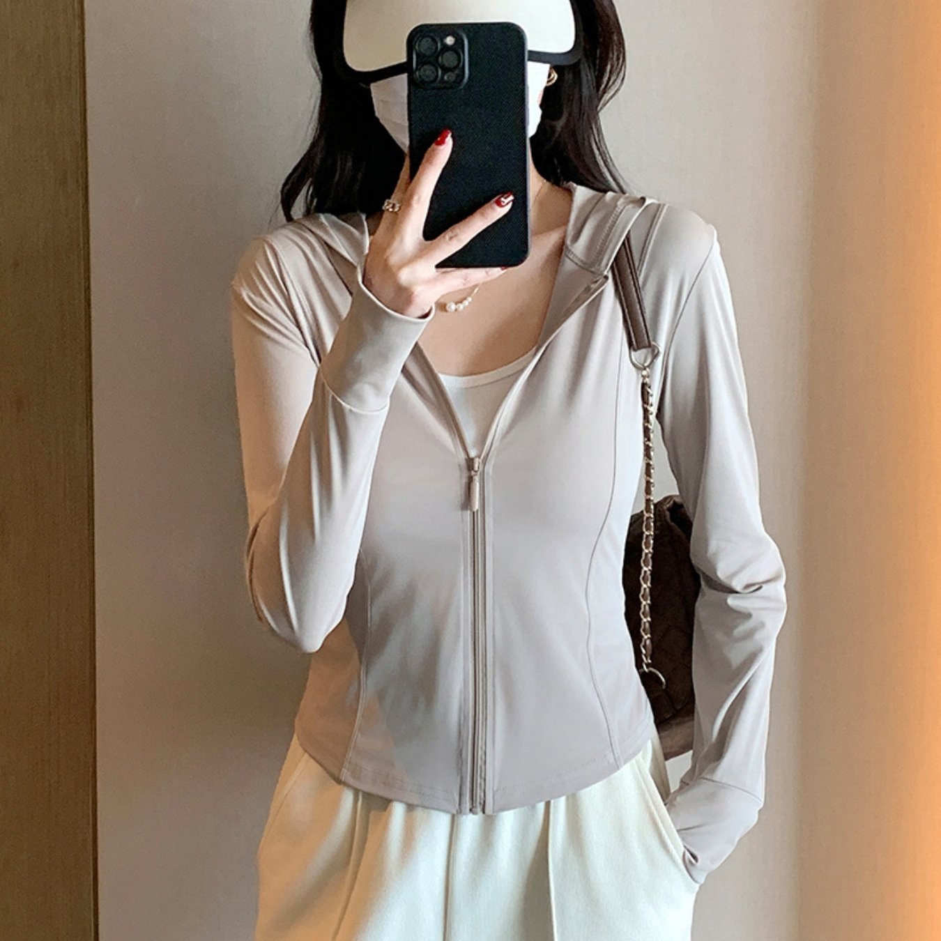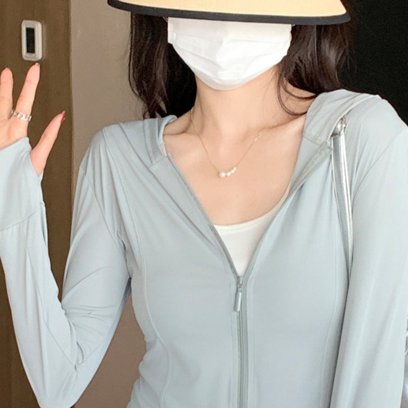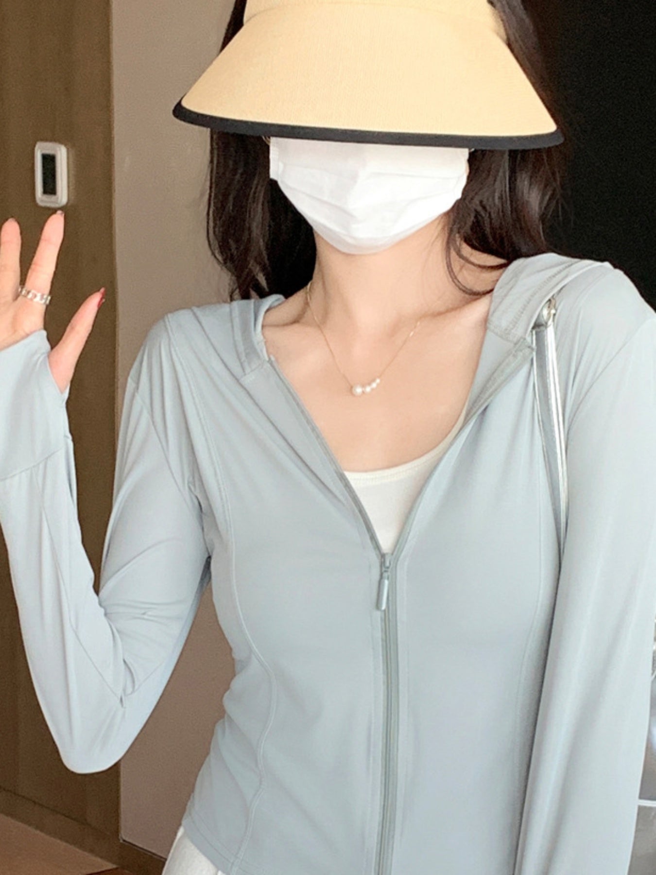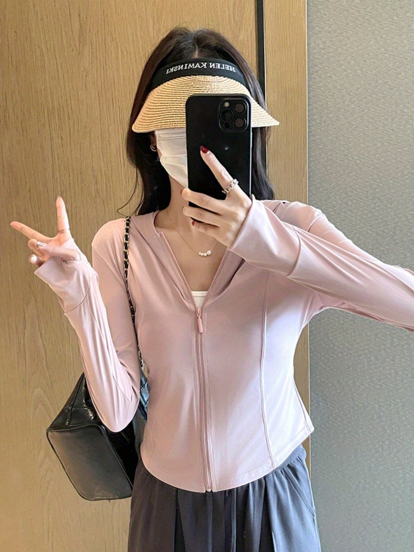 Women'S Lightweight Sun-Protective Ice-Like Breathable Clothing - -Proof Thin Sunscreen Jacket with Zipper Front, Round Neck & Side Pockets for Outdoor, Summer Casual Wear, Clothing, Minimalist Design, Skinfriendly Material