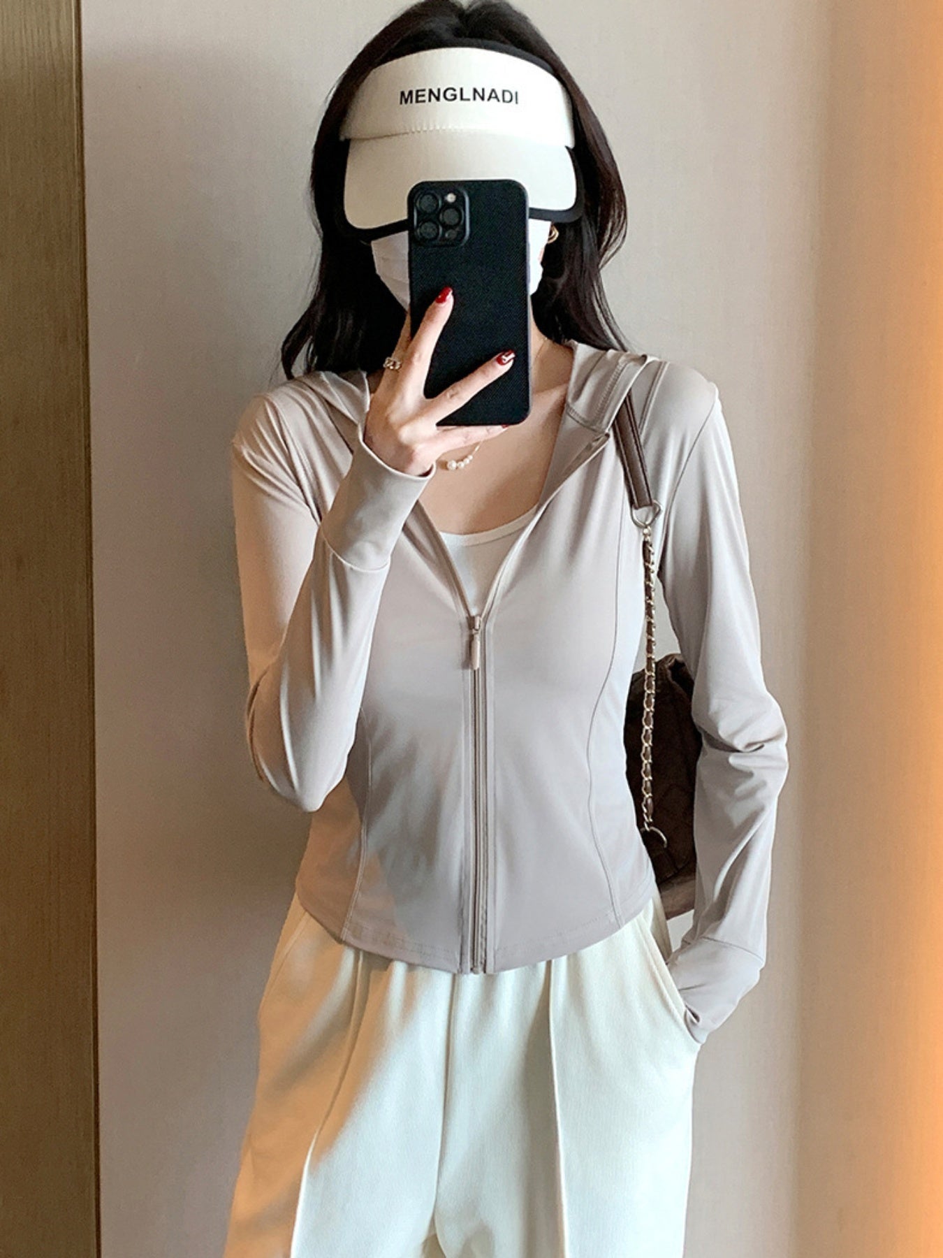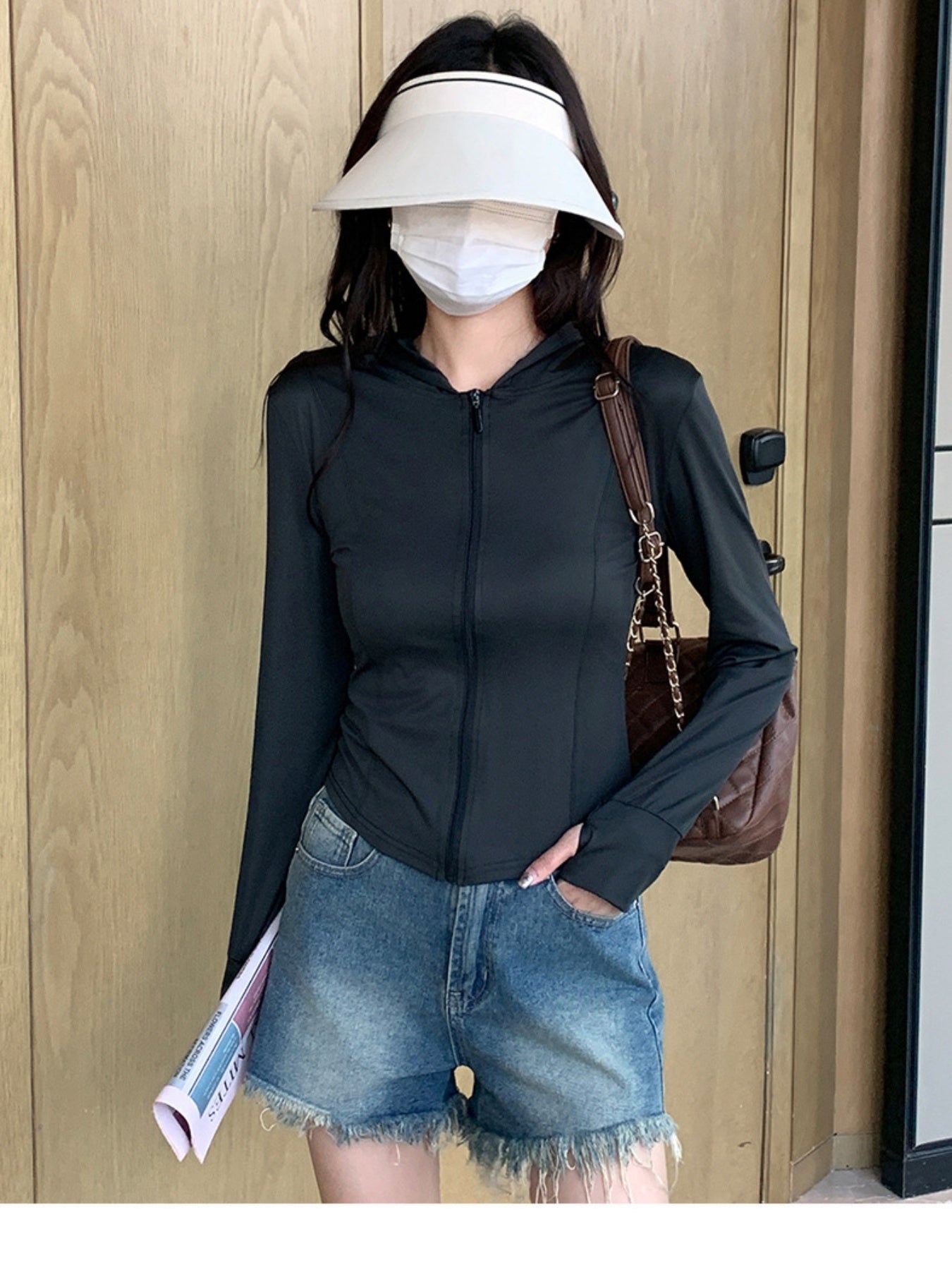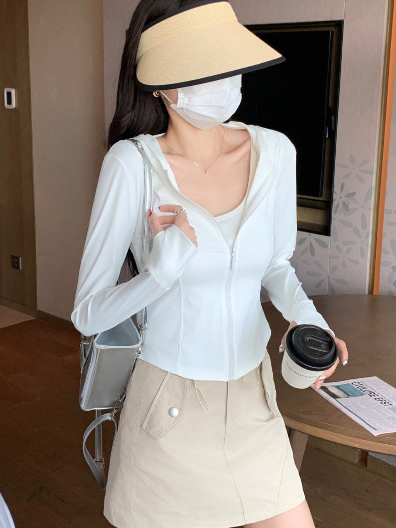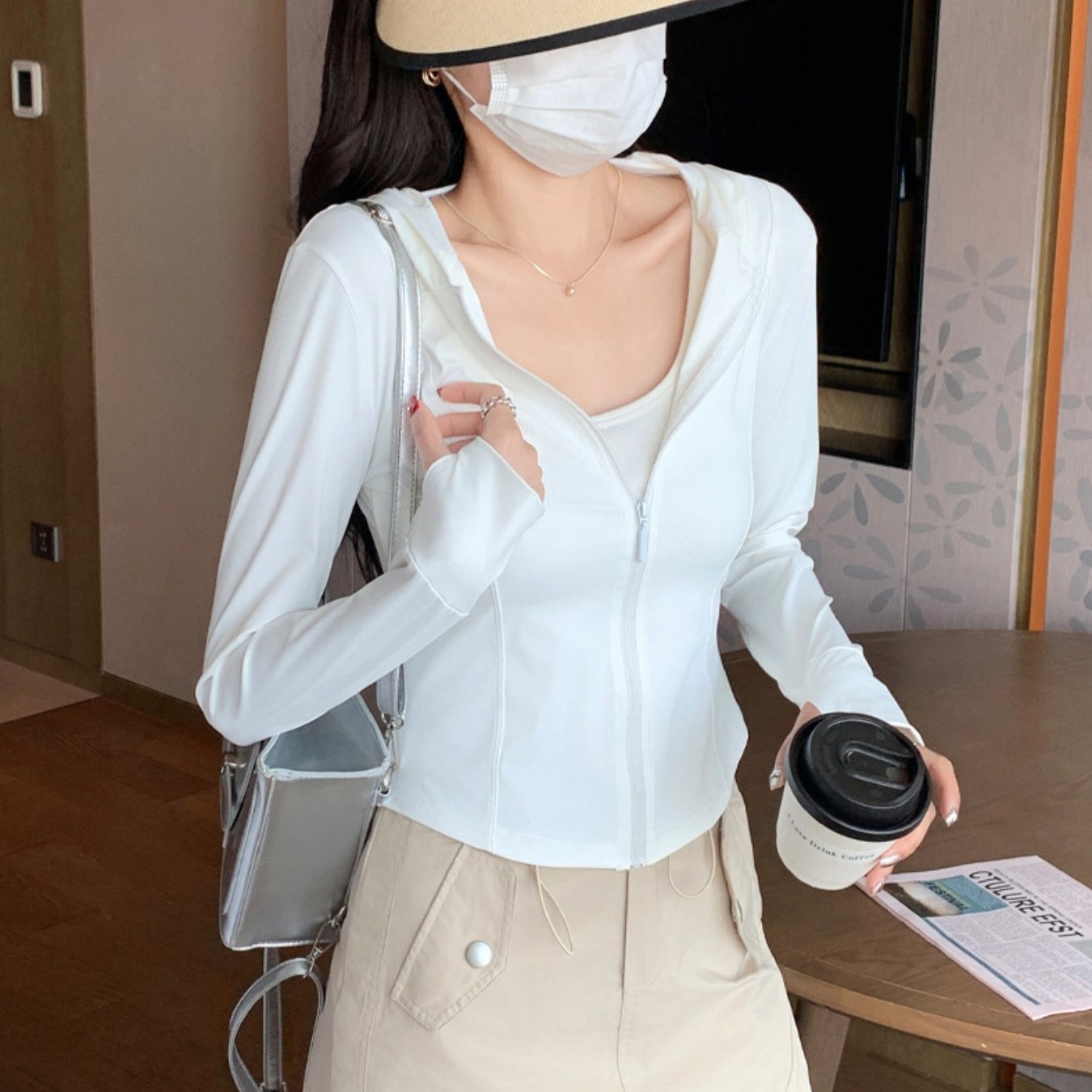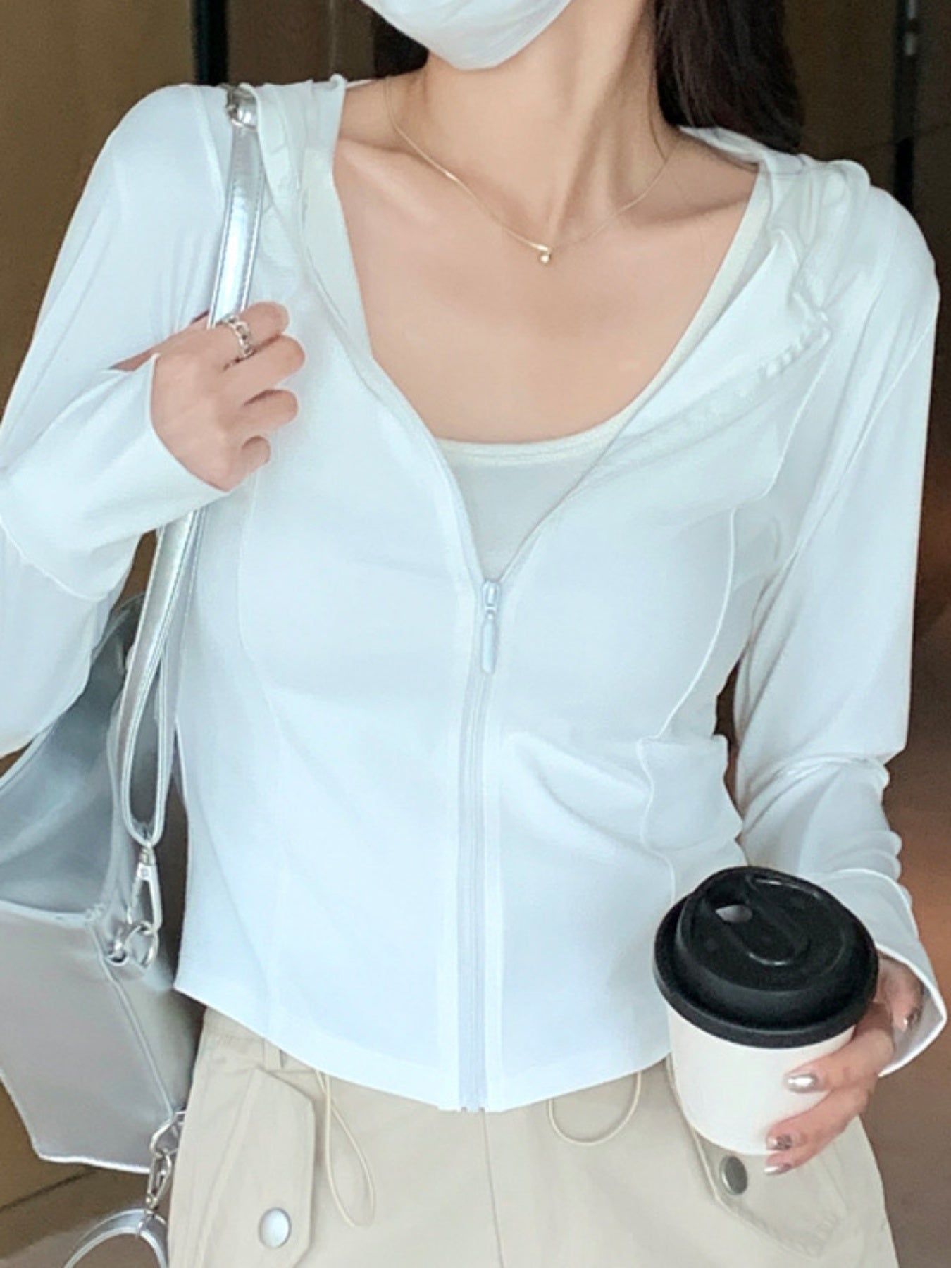 Women'S Lightweight Sun-Protective Ice-Like Breathable Clothing - -Proof Thin Sunscreen Jacket with Zipper Front, Round Neck & Side Pockets for Outdoor, Summer Casual Wear, Clothing, Minimalist Design, Skinfriendly Material