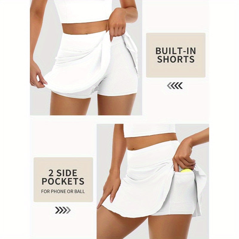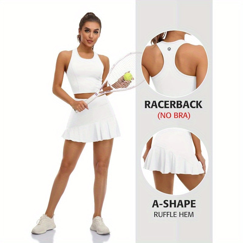 Women'S Tennis Dress with Shorts & Pockets - Racerback Golf & Workout Outfit, Breathable Stretchy Fabric, Adjustable Straps, White, Tennis Accessories, Sports Apparel, Sporty Design, Comfortable Fit
